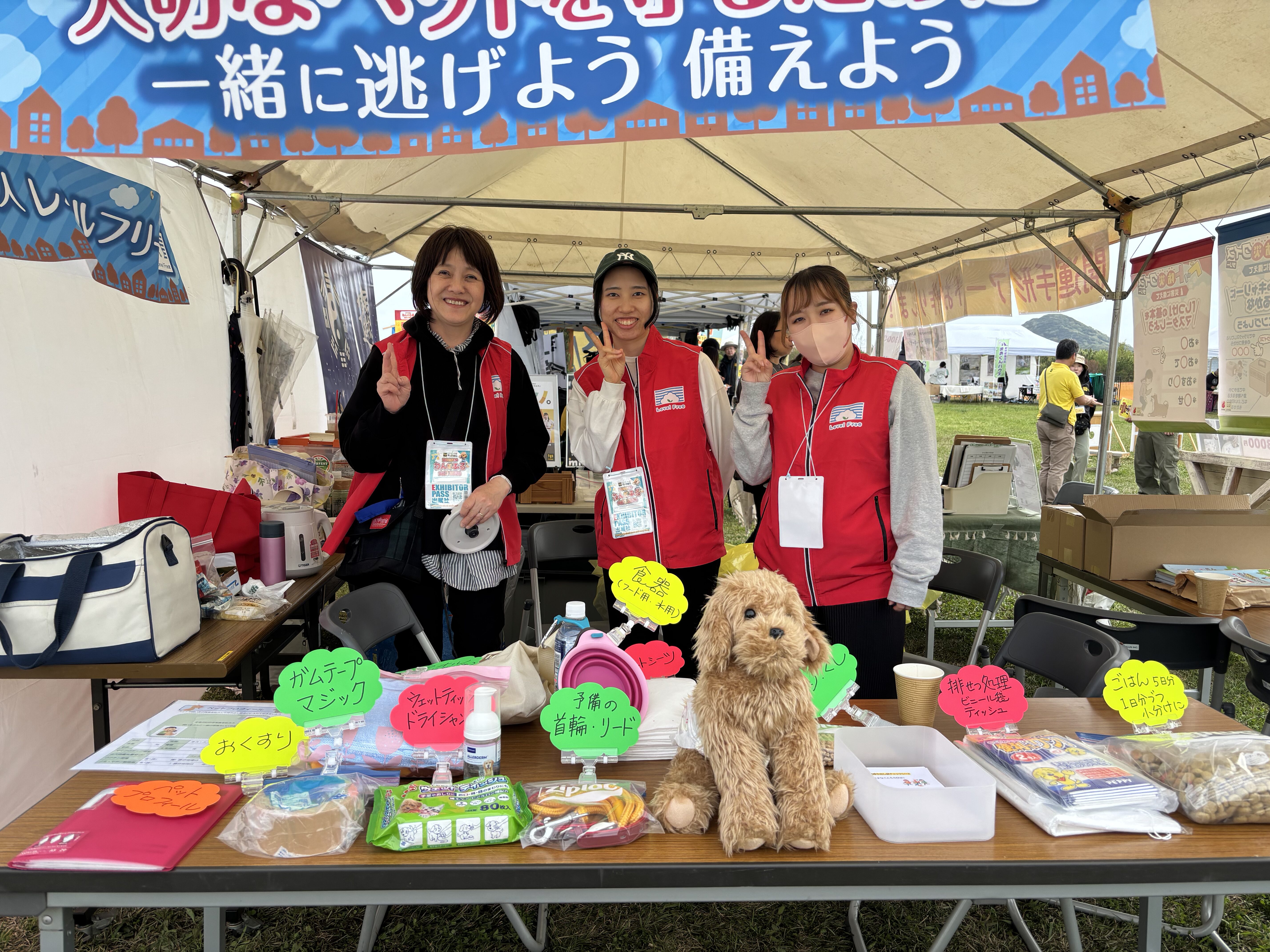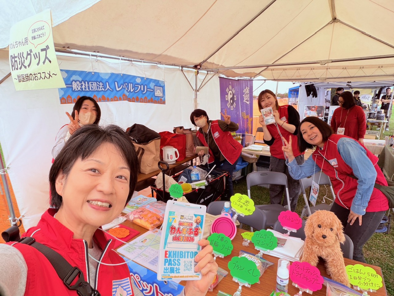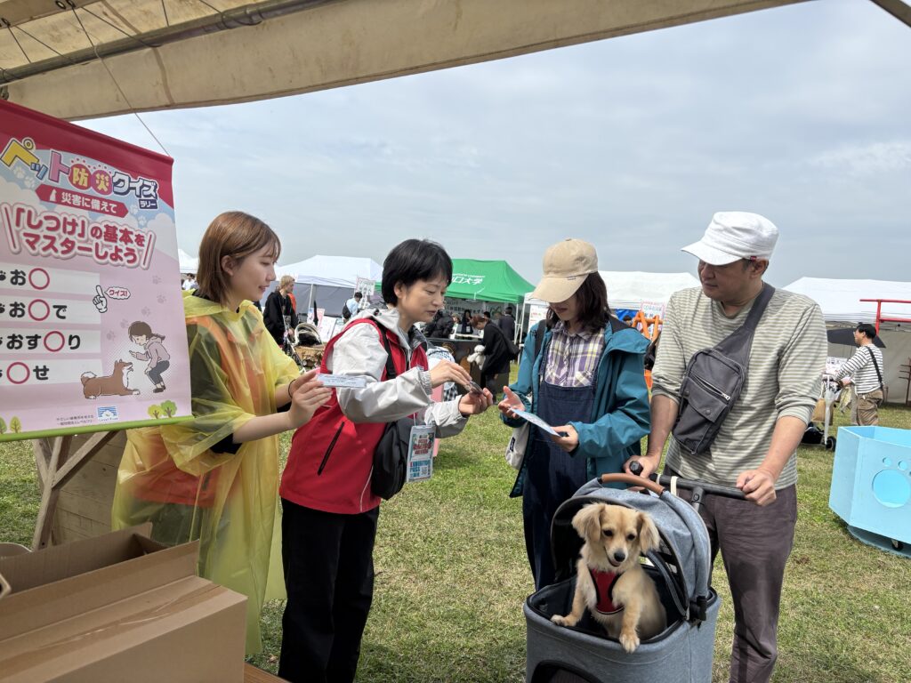 [活動報告]西日本最大級のドッグイベント「わんだふる山口2026」に参加しました 2026年4月18日 最終更新日時 : 2026年4月26日 webmaster 日時:2026年4月18(土)~19日(日)10:00~16:00場所:山口きらら博記念公園大芝生広場 今年も「わんだふる山口2026」で、ペット避難の啓発のブース展示を行いました。西日本最大級とあって、会場は県内外から集まった多くの愛犬家の方々の熱気に包まれました。 私達は、ペット防災クイズに答えてもらい景品と啓発のリーフレットを渡したり、わんちゃんのための非常持ち出し袋の展示を見てもらいながら、みなさんと交流をしました。