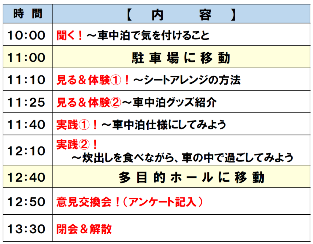 [活動報告]車中泊避難体験会